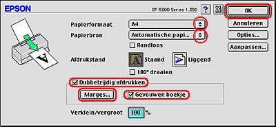 Dubbelzijdig afdrukken met de instelling Gevouwen boekje voor Macintosh