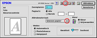 ![]() | Geef de gewenste instelling op bij Afdrukmateriaal. |