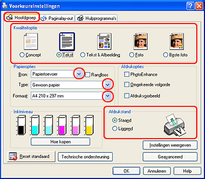 Instellingen van de printerdriver voor Windows