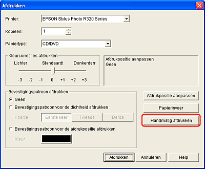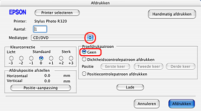 Zie de Help van EPSON Print CD voor meer informatie. U kunt de afdrukpositie ook controleren met het daarvoor bestemde controleblad dat u bij dit apparaat hebt gekregen.