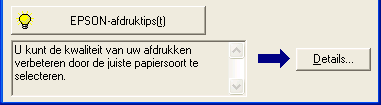 In het tekstvak onderaan het venster van de voortgangsbalk worden tips weergegeven voor een optimaal gebruik van uw Epson-printersoftware. Er verschijnt een nieuwe tip om de 30 seconden. Als u meer informatie wilt over een tip die wordt weergegeven, klikt u op Details.