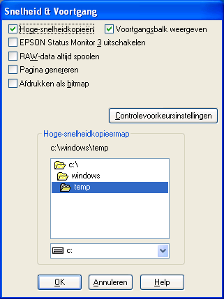 Selecteer Hoge-snelheidkopieën als u meerdere exemplaren van uw document sneller wilt afdrukken. De afdruksnelheid wordt verhoogd doordat bij het afdrukken van meerdere exemplaren van een document de ruimte op de vaste schijf als cache wordt gebruikt.