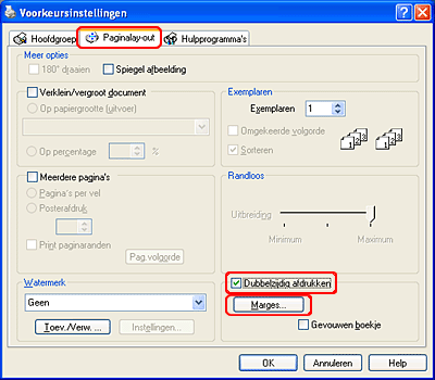 Klik op het tabblad Paginalay-out en schakel het selectievakje Dubbelzijdig afdrukken in.