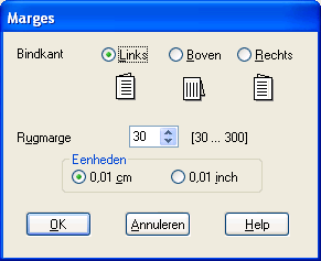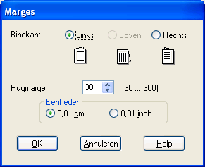 Geef de rand aan waar het papier wordt gebonden. U kunt kiezen uit Links, Boven en Rechts.