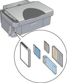 Verwijder de kaart niet en zet het apparaat nooit uit zolang er wordt afgedrukt of zolang het lampje van de kaartsleuf of het lampje Aan knippert. Er kunnen dan gegevens verloren gaan op de geheugenkaart.