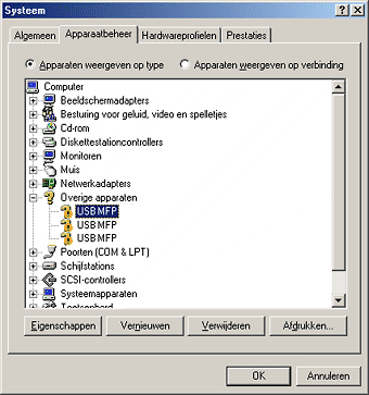 Als USB MFP of EPSON Stylus Photo RX420 wordt weergegeven onder Overige apparaten (Other devices), is de printersoftware niet goed geïnstalleerd. Ga verder met stap 5.