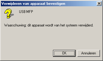 Selecteer onder Overige apparaten (Other devices) de optie USB MFP of EPSON Stylus Photo RX420 en klik vervolgens op Verwijderen (Remove). Klik daarna op OK.