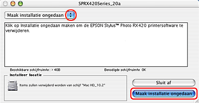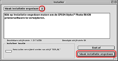 ![]() | Selecteer Maak installatie ongedaan (Uninstall) in het menu linksboven in het scherm en klik op Maak installatie ongedaan (Uninstall). |