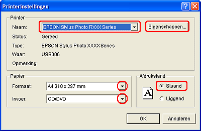Klik op Eigenschappen om de printerdriver te openen.