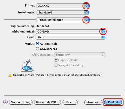 Afdrukken op een cd/dvd in Mac OS X
