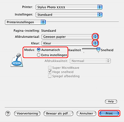 Instellingen van de printerdriver voor Mac OS 8.6 tot 9.x