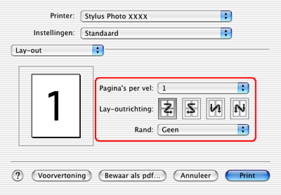 Hiermee worden twee of vier pagina's van uw document afgedrukt op één vel papier. |