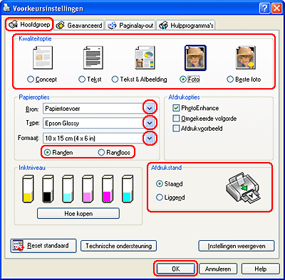 Klik op OK om het venster met printerinstellingen te sluiten.