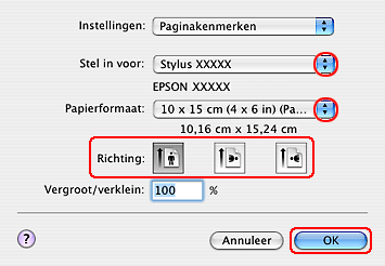 Maak na het opgeven van de bovenstaande instellingen eerst één proefafdruk en controleer het resultaat, voordat u grote hoeveelheden afdrukt.
