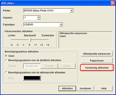 Wanneer dezelfde cd/dvd opnieuw wordt bedrukt, zal de afdrukkwaliteit niet verbeteren.