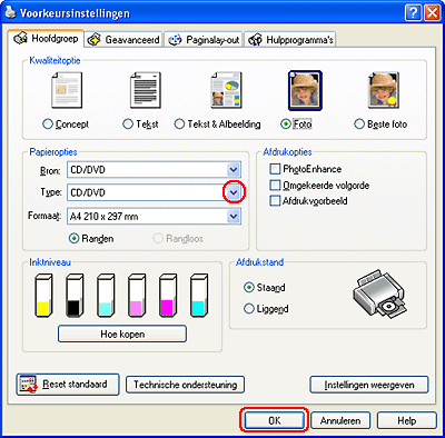 Selecteer CD/DVD of CD/DVD Premium Surface bij Type.