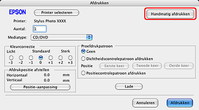 Als u een groot aantal cd's/dvd's wilt bedrukken, druk dan eerst af op een extra cd/dvd en controleer de bedrukte zijde na één hele dag.