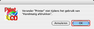 U kunt maar één cd of dvd tegelijk bedrukken. Wanneer Exemplaren op 2 of meer staat, moet u de bedrukte cd of dvd steeds uit het hulpstuk verwijderen en dan de volgende cd of dvd plaatsen. Druk op de knop Start om het afdrukken te hervatten.