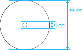 117 tot 120 mm (bij een cd/dvd van 12 cm), 77 tot 80 mm (bij een cd/dvd van 8 cm)