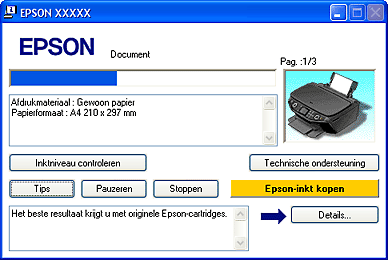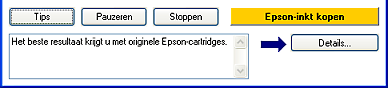 TipsIn het tekstvak van het venster van de voortgangsbalk worden tips weergegeven voor een optimaal gebruik van uw Epson-printerdriver. Er verschijnt een nieuwe tip om de 15 seconden. Als u meer informatie wilt over een tip die wordt weergegeven, klikt u op Details.