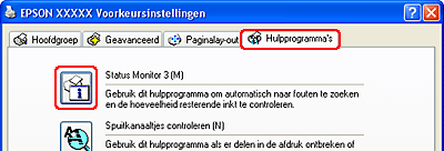 Zie Via het snelkoppelingspictogram op de taakbalk voor meer informatie over het toevoegen van dit pictogram aan de taakbalk.Open de printerdriver, klik op het tabblad Hulpprogramma's en klik vervolgens op de knop Status Monitor 3.