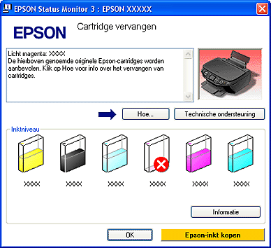 ![]() EPSON Status Monitor 3 biedt de volgende informatie: