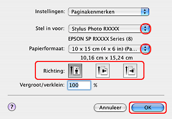 Maak na het opgeven van de bovenstaande instellingen eerst één proefafdruk en controleer het resultaat, voordat u grote hoeveelheden afdrukt.