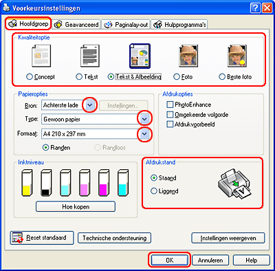 Klik op OK om het venster met printerinstellingen te sluiten.