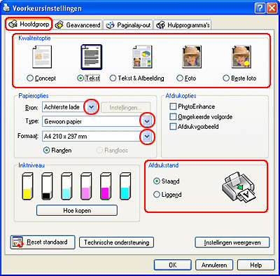 Klik op het tabblad Hoofdgroep en selecteer een van de volgende instellingen bij Kwaliteitoptie: