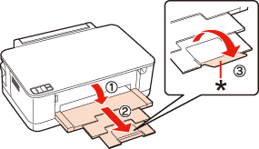 Dersom papirkassetten er i lagringsposisjon, forleng papirkassetten som vist i illustrasjonen.