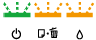 FeilindikatorerDu kan finne ut av mange vanlige skriverproblemer ved å bruke lysene på skriveren. Dersom skriveren slutter å virke og lysene er på eller blinker, bruk den følgende tabellen for å diagnostisere problemet, og følg deretter de anbefalte utbedringene.