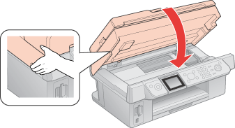Skriveren står på en flat, stabil overflate som er større enn sokkelen i alle retninger. Skriveren vil ikke fungere korrekt hvis den står på skrå.