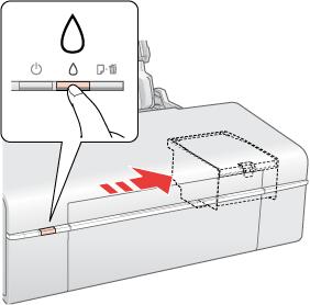 På-lyset slutter å blinke og holder seg på, og blekklyset slukker.![]() Forsiktig: