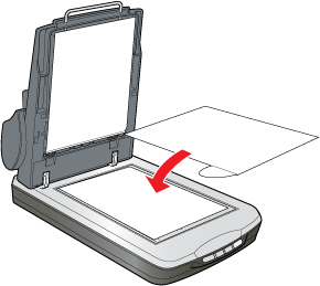 Plasser dokumentet eller fotografiet på glassplaten med bildesiden ned. Sørg for at toppen av dokumentet eller bildet ligger mot det øverste, høyre hjørnet på glassplaten.