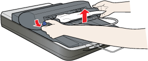 Dersom det oppstår fastkjøringer inne i ADM-en, må du åpne den og ta bort ev. papirer fra glassplaten. Sjekk deretter for å se om det stikker ut papir fra en av endene på materen.
