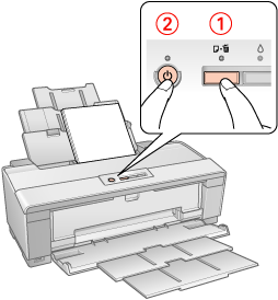 Hold papir-knappen nede og trykk på på-knappen for å skru på skriveren.