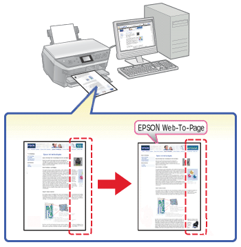 Med EPSON Web-To-Page kan du få web-sider til å passe til papirstørrelsen du bruker ved utskrift. Du kan også se en forhåndsvisning før utskrift.