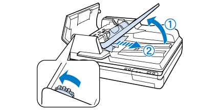 W przypadku zacięcia się papieru wewnątrz podajnika ADF, otwórz podajnik i usuń cały papier z szyby ekspozycyjnej. Następnie sprawdź, czy z którejś strony podajnika nie wystaje papier.