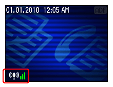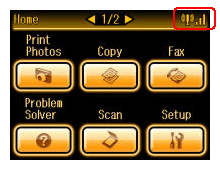 Jeśli drukarka jest podłączona do sieci, ta ikona pojawia się w prawym górnym lub lewym dolnym narożniku ekranu LCD.