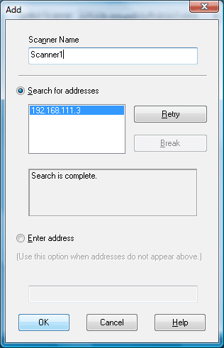 Wprowadź Scanner Name (Nazwa skanera) i poczekaj na zakończenie wyszukiwania.