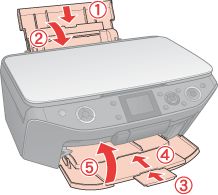 Zamknij the podpórkę papieru, przednią tacę i przednią pokrywę.