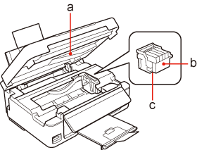 Głowica drukująca (pod uchwytem pojemnika z tuszem)
