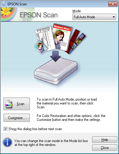 Kliknąć Scan (Skanuj). Program Epson Scan rozpoczyna skanowanie w trybie Full Auto Mode (Tryb automatyczny).