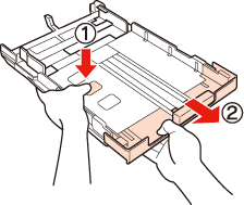 Quando utilizar papel de formato Legal, puxe o alimentador para fora, tal como indica a figura.