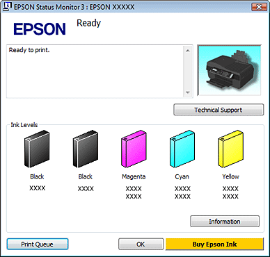 ![]() O EPSON Status Monitor 3 fornece as seguintes informações: