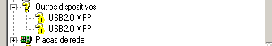 Se a indicação USB MFP ou EPSON Stylus CX3600 aparecer em Outros dispositivos, isso significa que o software da impressora não está instalado correctamente. Avance para o ponto 5.