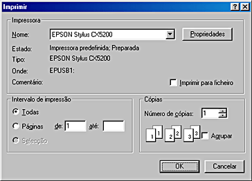 Na caixa de diálogo que aparece, faça clique em Impressora, Configurar, Opções ou Propriedades. Consoante a aplicação que estiver a utilizar, poderá ter de seleccionar uma combinação destas teclas. Aparecerá a janela do controlador da impressora.