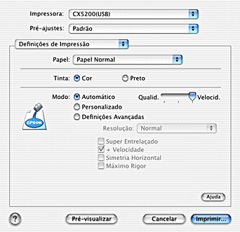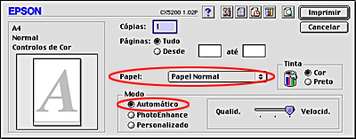 Seleccione Papel Normal para a definição Papel e Automático para a definição Modo.