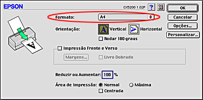 Seleccione A4 para a definição Formato. Em seguida, faça clique em OK para fechar a caixa de diálogo.