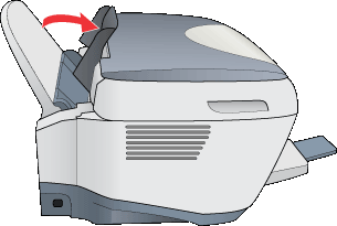 Certifique-se de que a resma de papel não ultrapassa a seta que se encontra na parte lateral do guia de margem esquerdo.